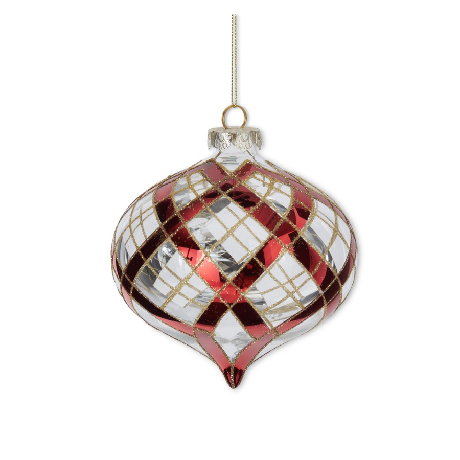 5" Glass Onion Ornament w/Glittered Red & Gold Plaid