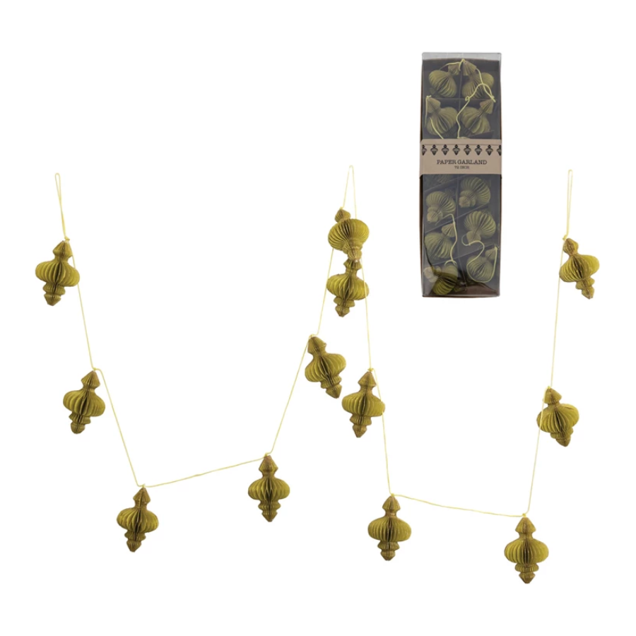 72" Paper Honeycomb Finial Garland w/ Gold Glitter Chartreuse