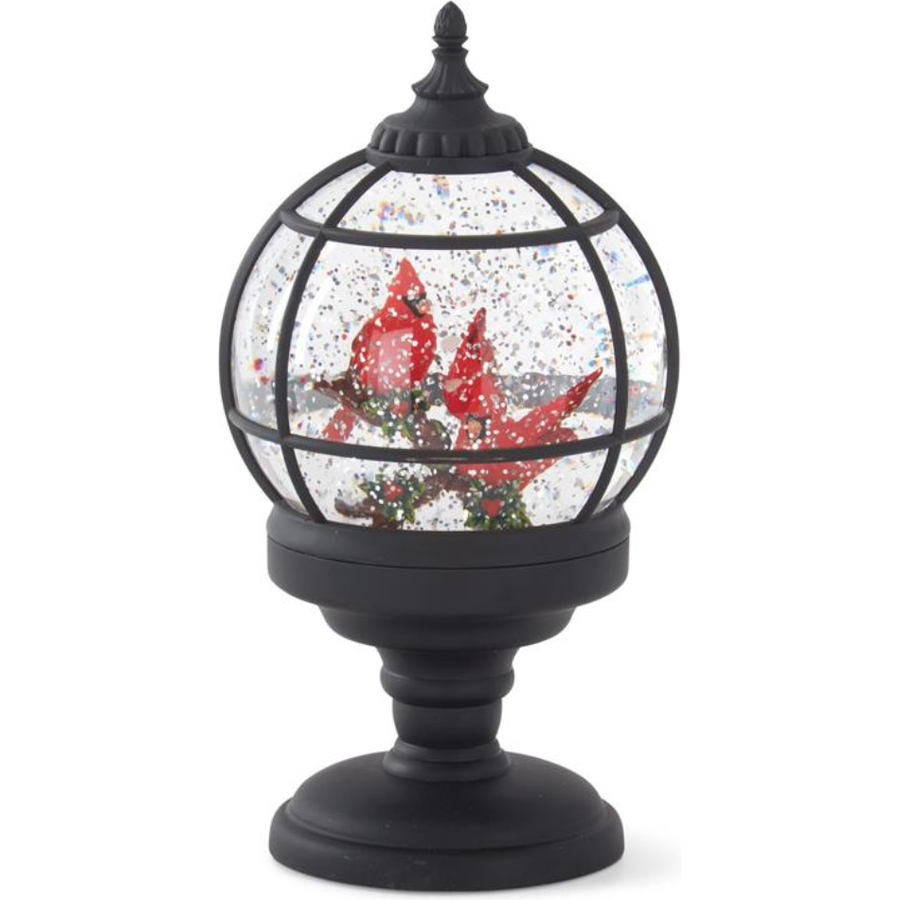 9.5" Black Grid Cardinals Water Spinning LED Snow Globe