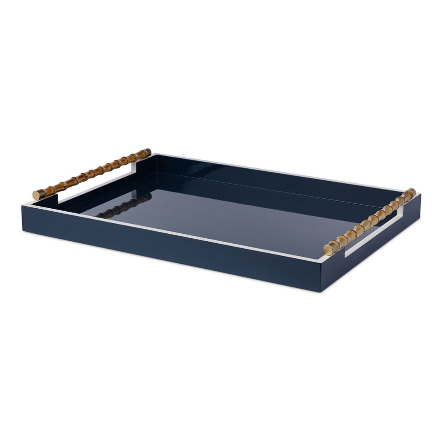 Coco Cay Lacquered Tray with Bamboo Handles Mistrial Blue