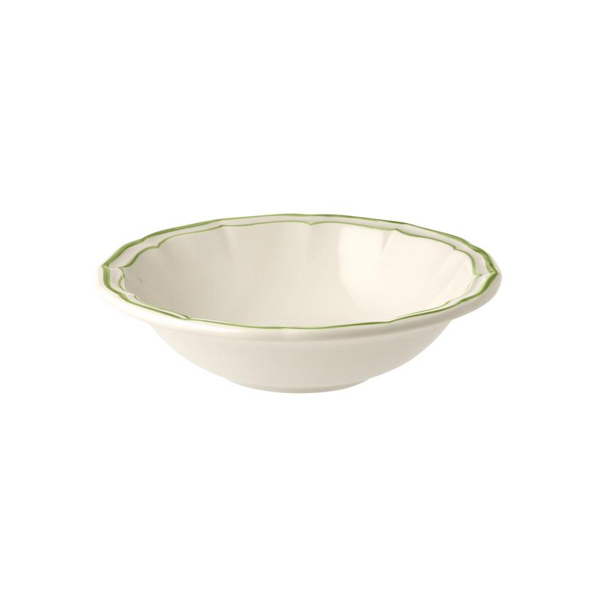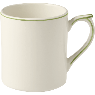 The Filet collection evokes everyday elegance a touch of lush spring green along a scalloped trim. Delicate brush strokes are hand-drawn on the contours of each shell-shaped piece.