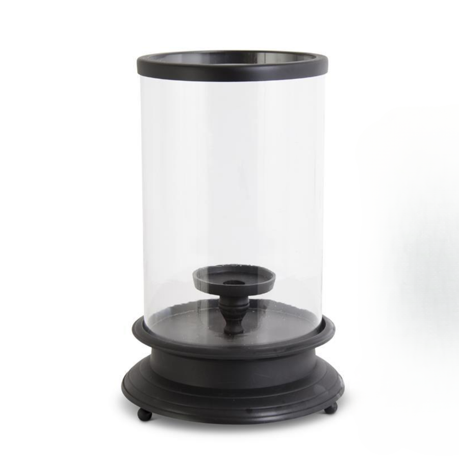 Glass Hurricanes on Black Metal Bases