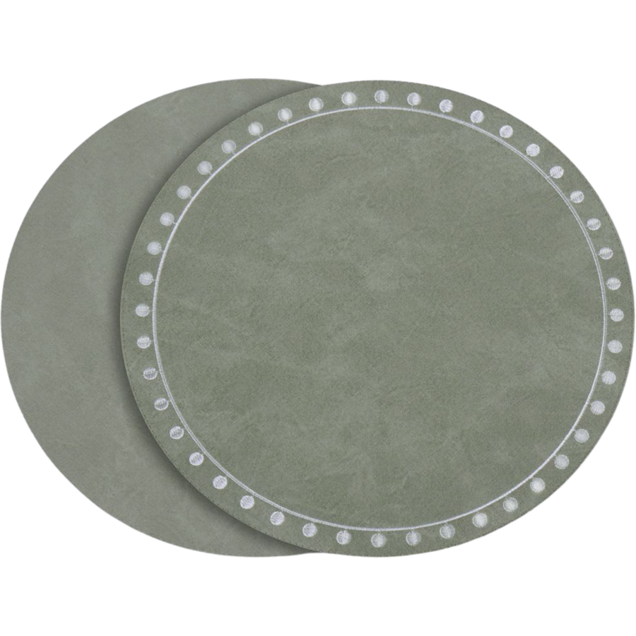 VIDA Round Embroidered Dots Round Placemats Green S/4