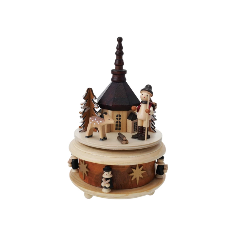 Wood Wind-Up Music Box "Oh Christmas Tree"